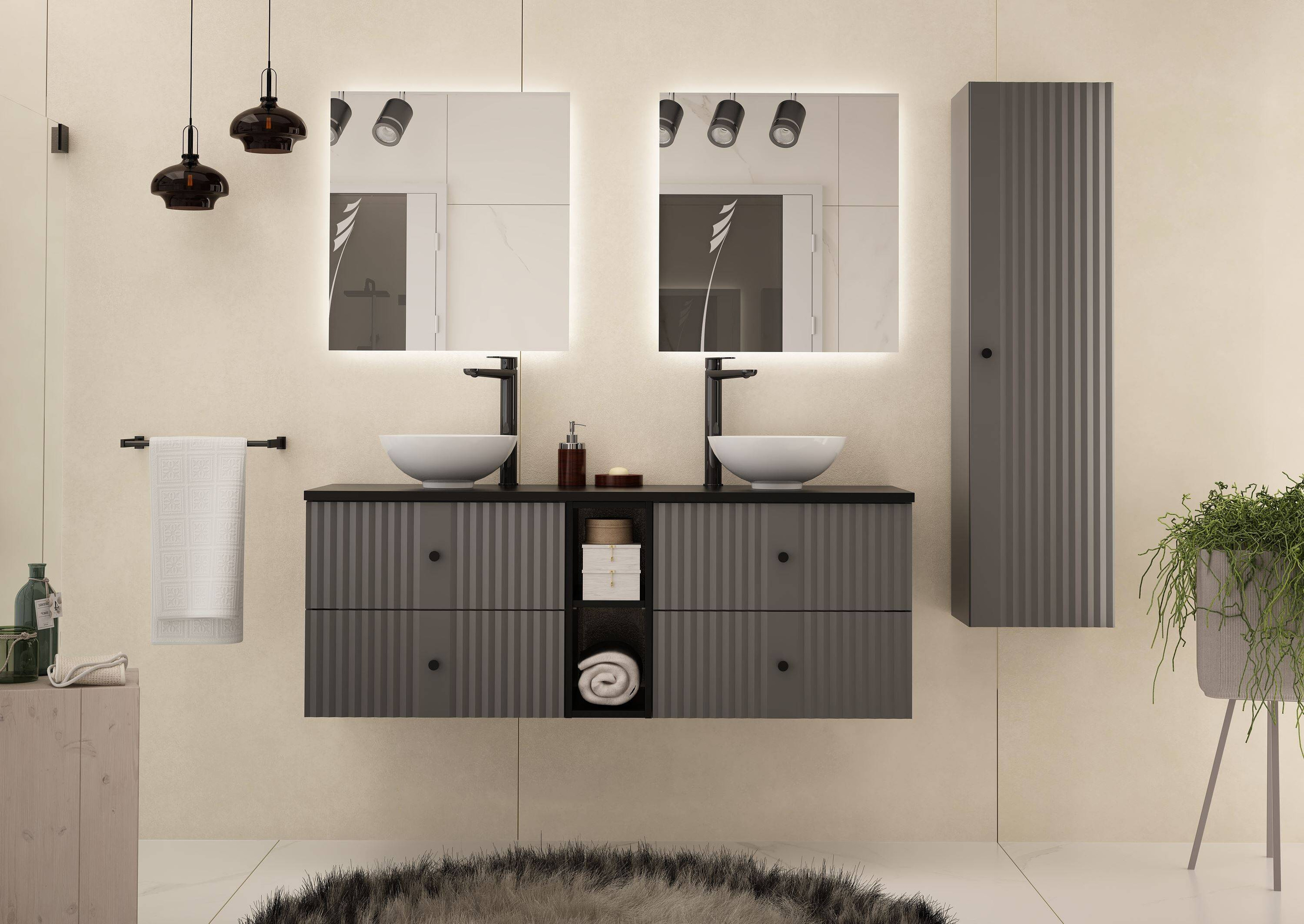 Niezależnie od tego, czy umieścisz go w salonie, przedpokoju, czy łazience, XILO-03 stanie się kluczowym elementem Twojego wnętrza. Jego uniwersalna szarość harmonijnie wkomponuje się w każdy kolor pomieszczenia, nadając mu wyjątkowego charakteru i klasy. Zainwestuj w mebel, który łączy piękno z praktycznością i ciesz się jego niepowtarzalnym urokiem każdego dnia.