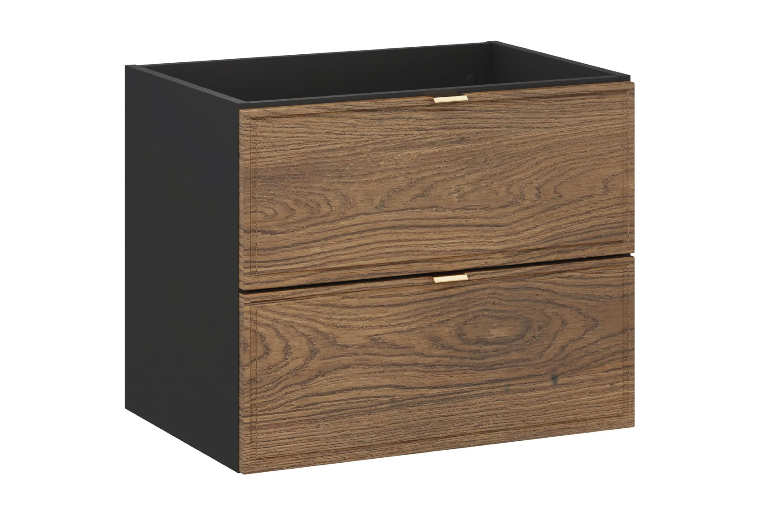 Zestaw Talia Casella to elegancka szafka pod umywalkę 60 cm, wykonana z trwałych materiałów w matowej czerni i dekorze Dąb Casella. Dwie szuflady z cichym domykaniem oraz możliwość personalizacji uchwytów zapewniają styl i funkcjonalność w Twojej łazience