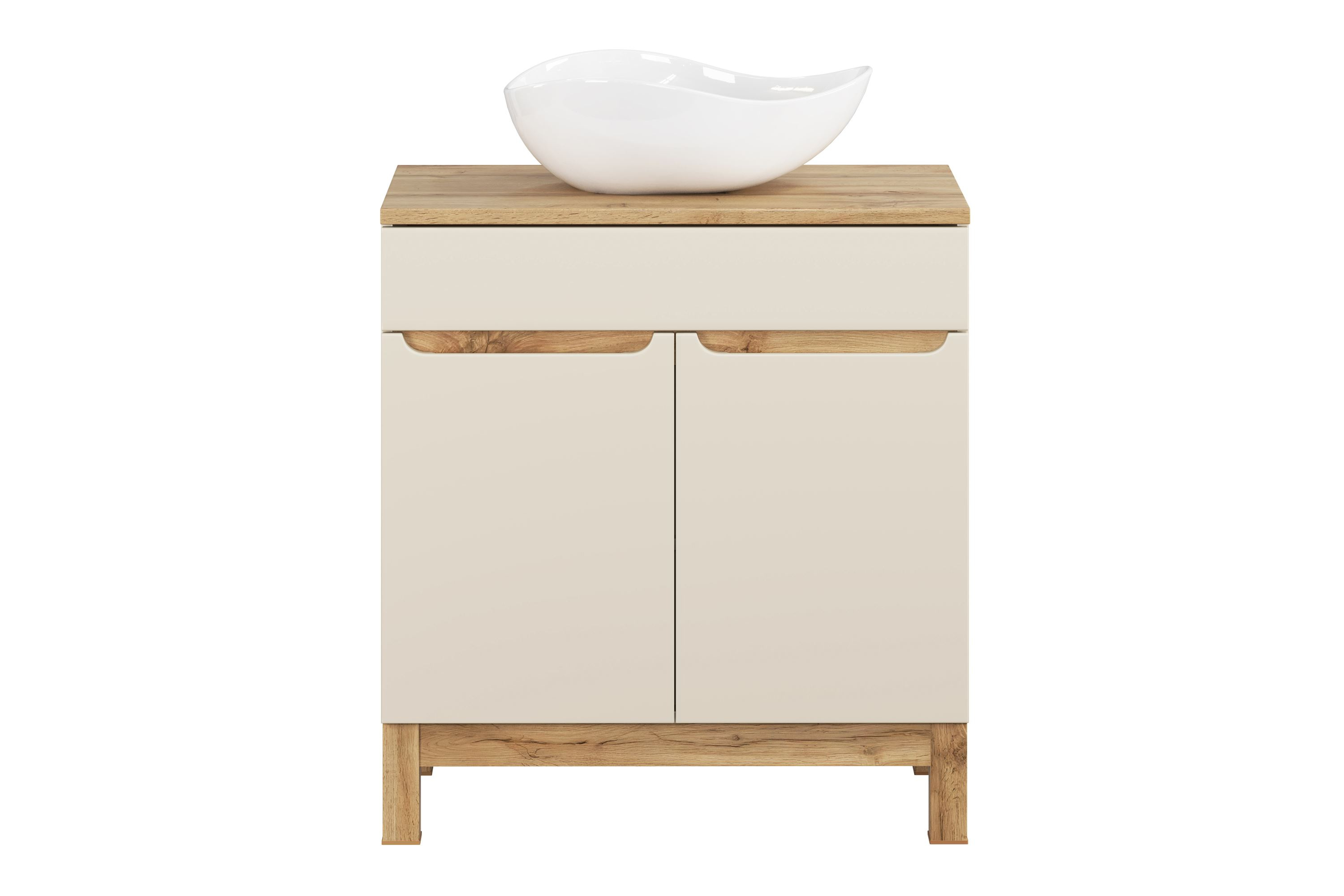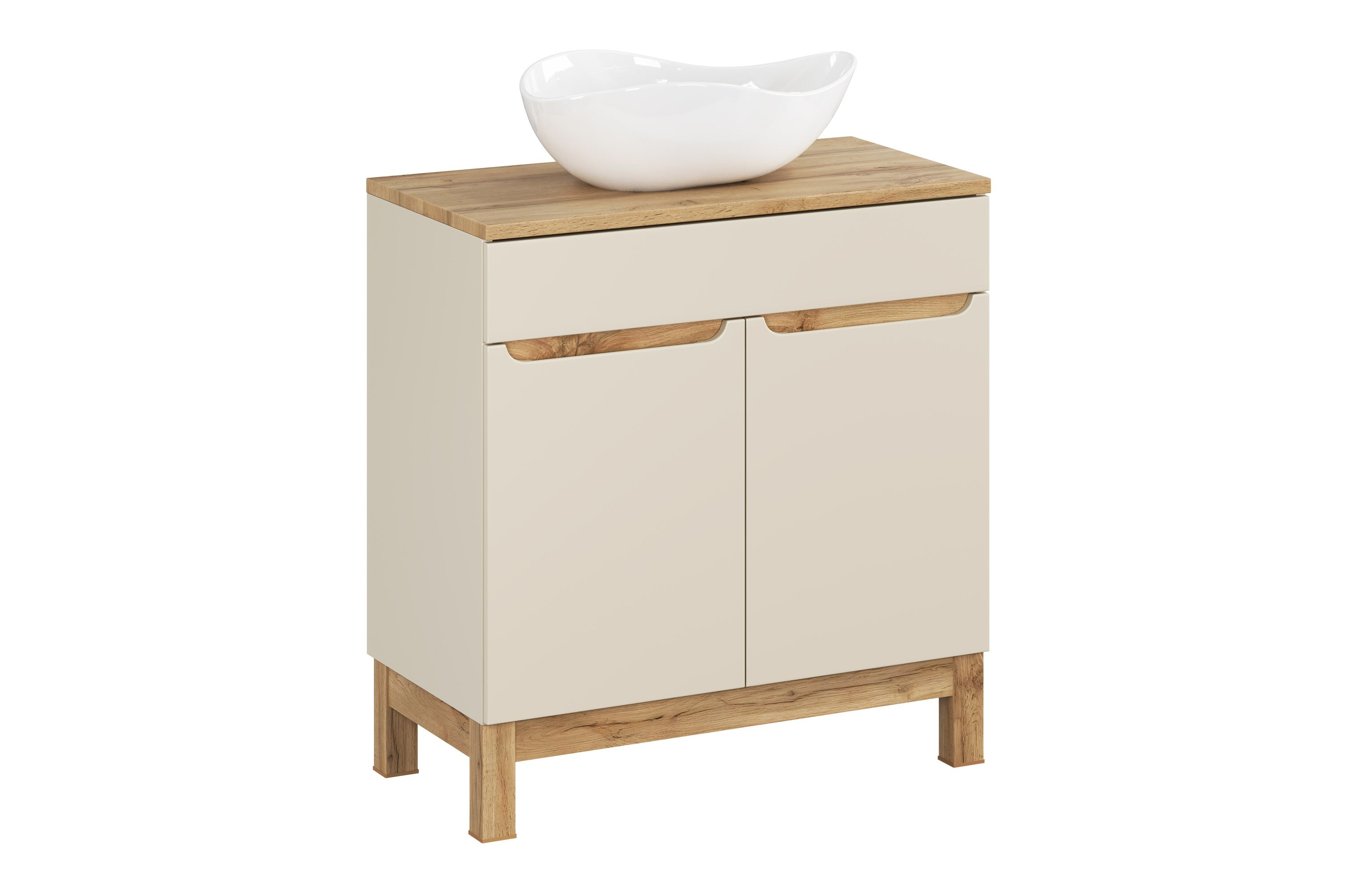 - Szafka z umywalką Bali Cashmere to elegancja w nowoczesnym wydaniu. Wysokiej jakości płyta MDF w matowym kolorze kaszmiru, z blatem w odcieniu dębu Wotan oraz ceramiczną umywalką w białym połysku sprawi, że Twoja łazienka stanie się stylowym miejscem.
