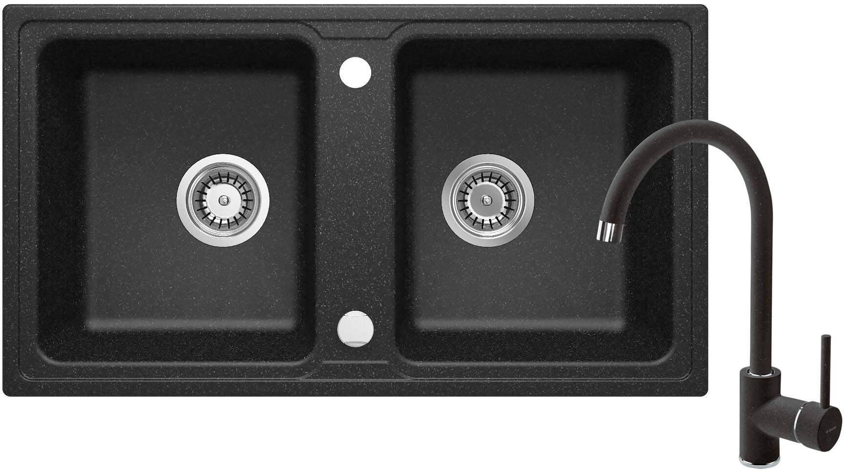 Zlewozmywak granitowy z baterią 2-komorowy Zorba