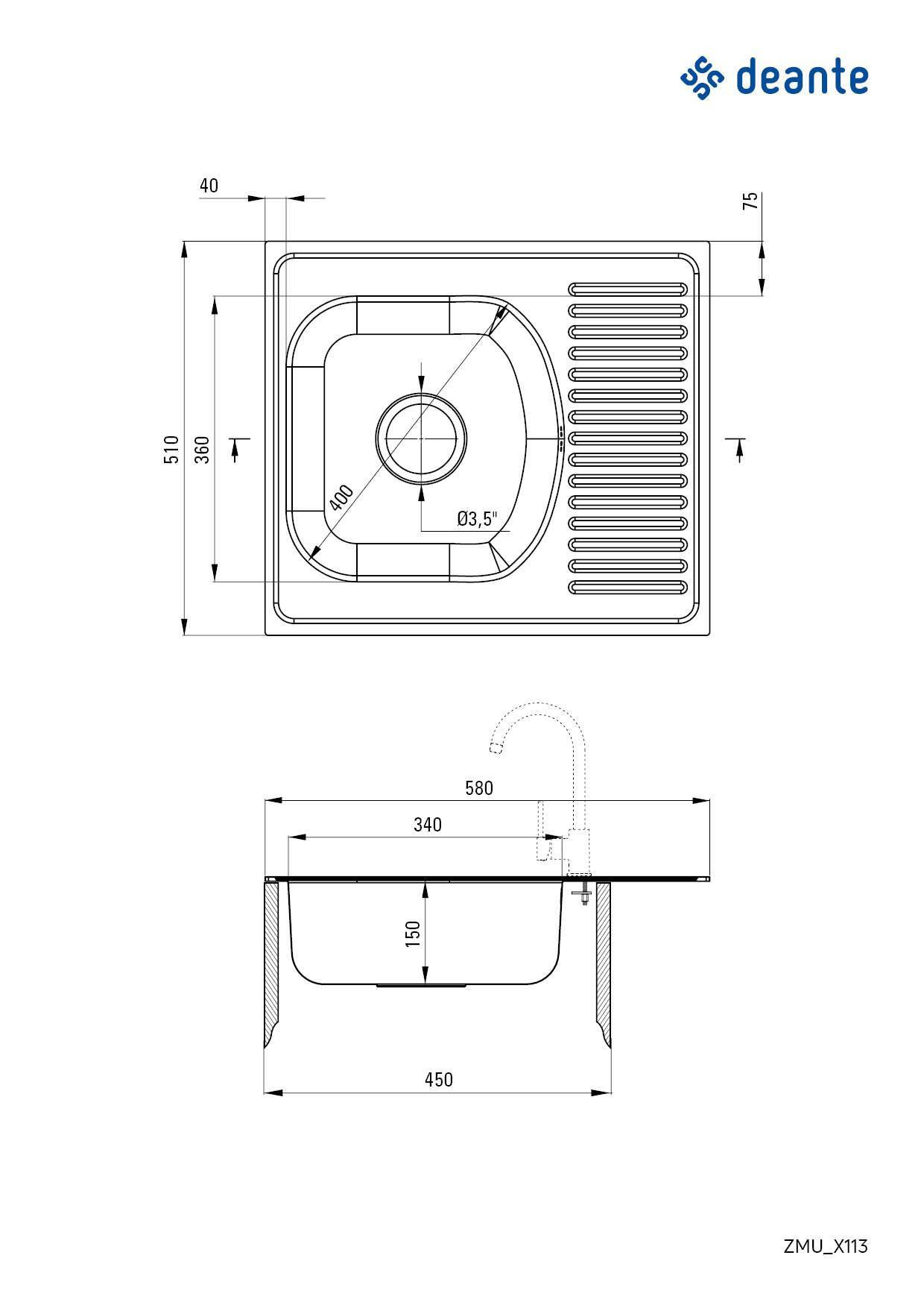 Zlewozmywak stalowy 1-komorowy z ociekaczem Techno