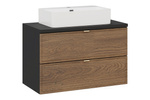 Zestaw Szafka Pod Umywalkę z Blatem 80 cm i Umywalka Nablatowa oraz Słupek Wysoki Talia Casella Czarny Mat