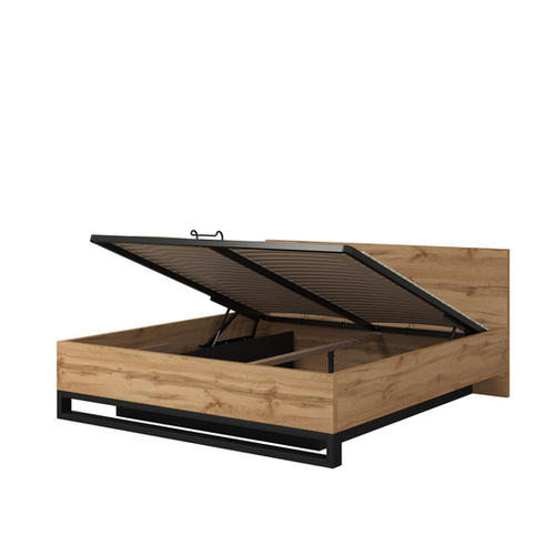 Halle S – Łóżko z Pojemnikiem i Stelażem 160x200 cm Dąb Wotan Czarny Mat