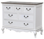 Rimini White 024 Komoda 5S prowansalska biała z przecieranym brązowym blatem drewno/mdf