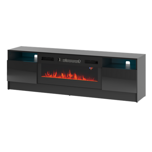 YORK-02 - Komoda RTV 2D z LED i Kominkiem Czarny Mat Czarny Połysk