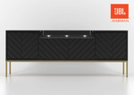 ASPEN-06 - Komoda RTV 3D z Soundbarem JBL i Oświetleniem LED Czarny Mat Złoty Stelaż