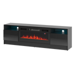 DUKE-01 - Komoda RTV 2D z Oświetleniem LED i Kominkiem Elektrycznym Czarny Mat Czarny Połysk