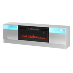 DUKE-01 - Komoda RTV 2D z Oświetleniem LED i Kominkiem Elektrycznym Biały Mat Biały Połysk
