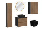 Zestaw Szafka z Blatem 60 cm i Umywalka Nablatowa oraz Słupek Wysoki 2 Półsłupki Lustro i Sedes Talia Casella Czarny Mat