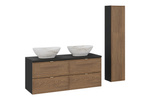 Zestaw Szafka Pod Umywalkę z Blatem 120 cm i 2 Umywalki Nablatowe oraz Słupek Wysoki Talia Casella Czarny Mat