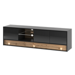 VISION-01 - Komoda RTV 3D z Oświetleniem LED Czarny Mat Dąb Wotan Mat Czarny Połysk